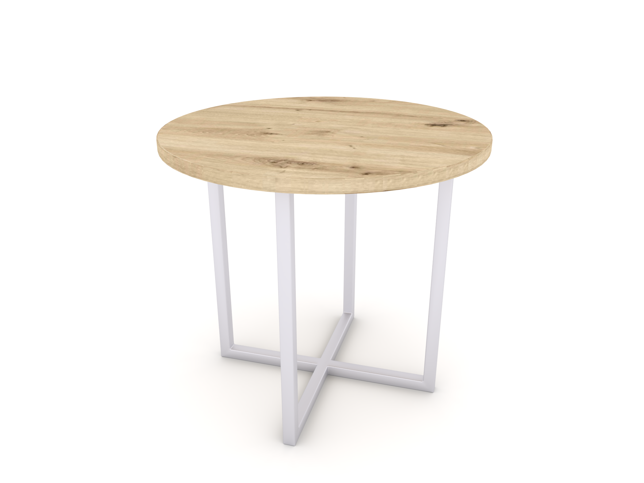 Standardowy wymiar: blat o średnicy: 50cm; stelaż: 40x40cm wysokość: 45cm. Stelaż zawsze jest cofnięty o 5cm z każdej strony względem blatu.